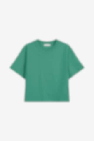 Kort Crew-Neck i firkantet model designet af stylisten Sara Biderman. Fremstillet udelukkende af blød økologisk bomuld, hvilket gør, at den fungerer til det meste: sporty, afslappet eller en finere påklædning. Brug den sammen med shorts eller under en jakke. Modellen er designet til at være "oversized", så vælg med fordel din normale størrelse.