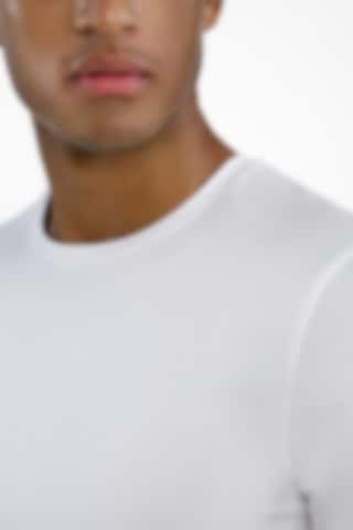 Fremstillet af luksuriøst Lenzing TENCEL™ Lyocell, har denne T-shirt en bemærkelsesværdig glans og en silkeblød berøring. Den tilbyder en lidt slankere silhuet med lige den rette mængde stræk for en tilpasset følelse, ideel til lagdeling under en skjorte eller til at bære alene for en elegant, let pasform. Halsudskæringen har en skjult søm, der øger komforten, mens vaskeinstruktionerne er trykt direkte på stoffet for at eliminere gnidning fra etiketter.