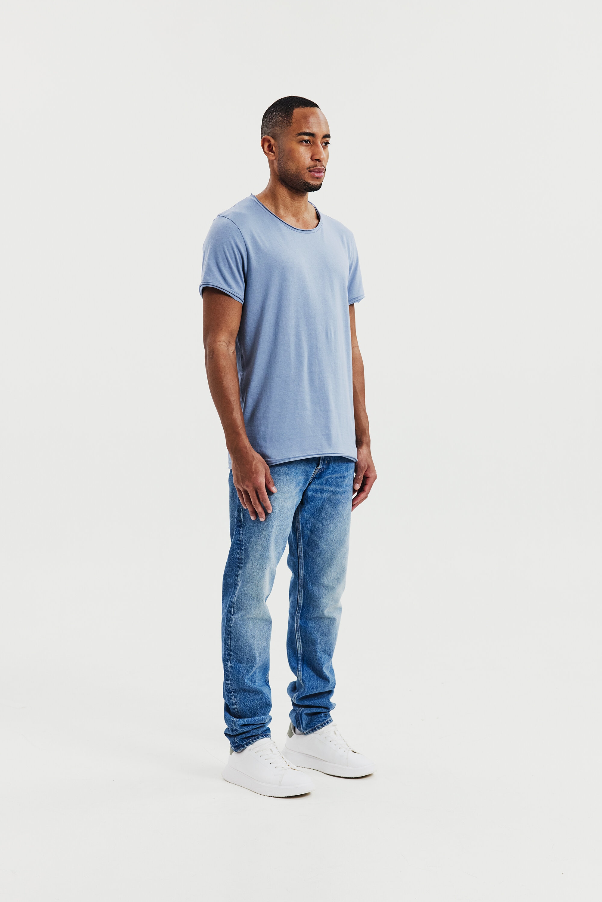 Afslappet, behagelig og 100% økologisk bomuld. Vores ikoniske Crew-Necks løse fit, brede halsudskæring og bløde, opsmøgede sømme gør den helt perfekt til både de varme dage og de afslappende dage derhjemme på sofaen. Vi har selvfølgelig trykt vaskeanvisningerne direkte på stoffet, så der ikke er noget kradsende mærke. T-shirten gør sig bedst, når den bæres løst og ikke er stoppet ned i bukserne.