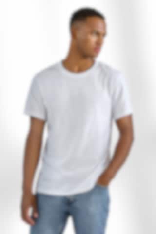 Perfekt til lag-på-lag-look, denne ultralette T-shirt er fremstillet af 150 GSM single jersey for en blød og åndbar fornemmelse. Designet i en regular, let afslappet pasform med ribbet halsudskæring – ideel under en skjorte eller sweater.