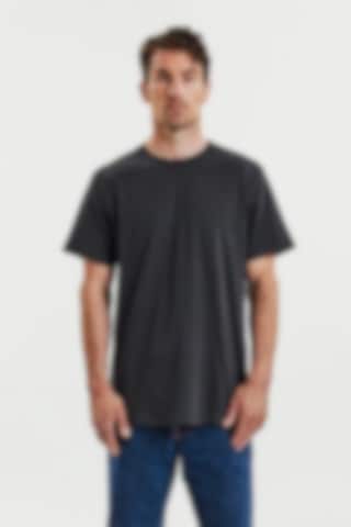 Perfekt til lag-på-lag-look, denne ultralette T-shirt er fremstillet af 150 GSM single jersey for en blød og åndbar fornemmelse. Designet i en regular, let afslappet pasform med ribbet halsudskæring – ideel under en skjorte eller sweater.