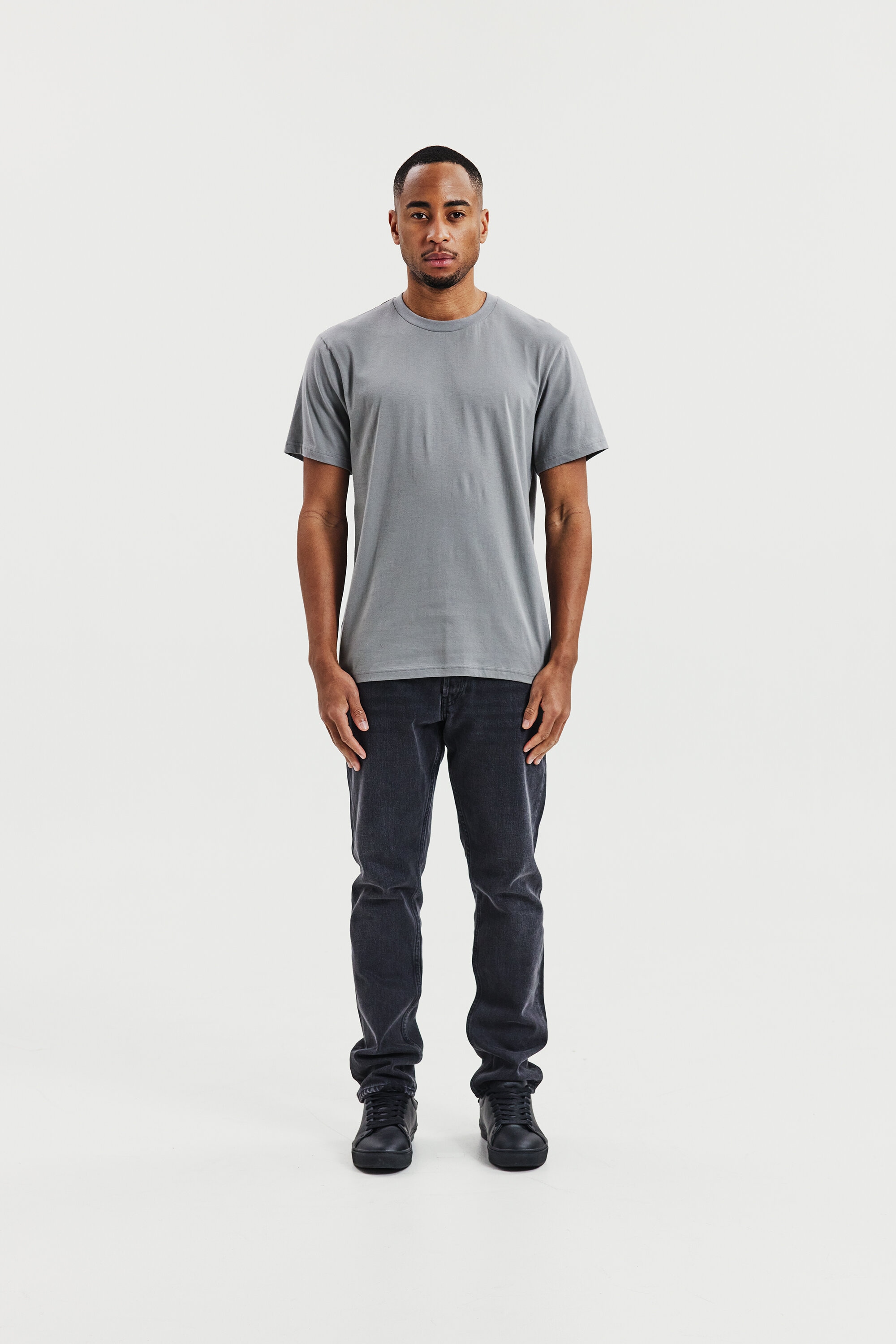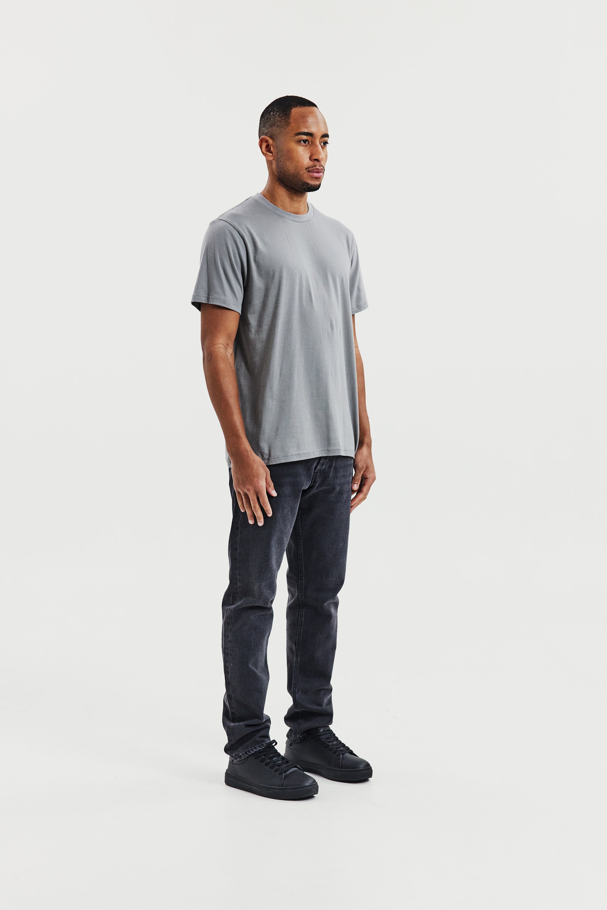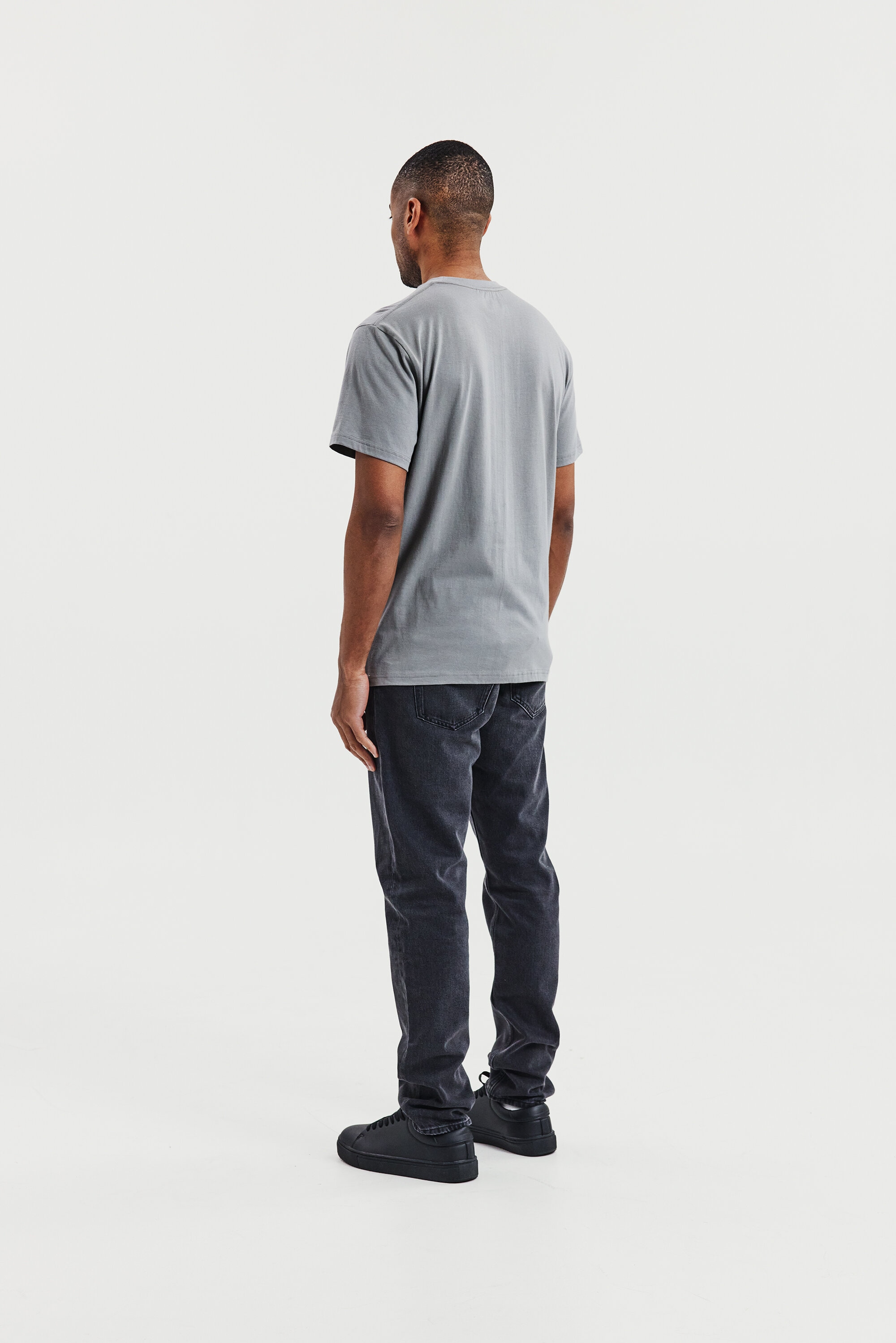 Perfekt til lag-på-lag-look, denne ultralette T-shirt er fremstillet af 150 GSM single jersey for en blød og åndbar fornemmelse. Designet i en regular, let afslappet pasform med ribbet halsudskæring – ideel under en skjorte eller sweater.