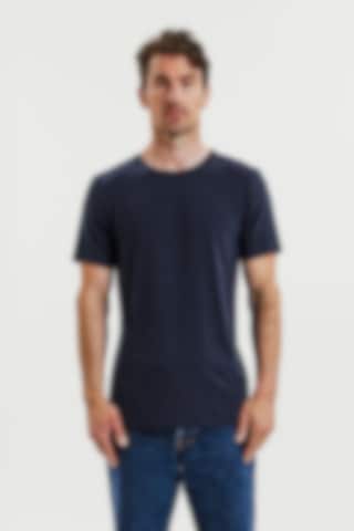 Fremstillet af luksuriøst Lenzing TENCEL™ Lyocell, har denne T-shirt en bemærkelsesværdig glans og en silkeblød berøring. Den tilbyder en lidt slankere silhuet med lige den rette mængde stræk for en tilpasset følelse, ideel til lagdeling under en skjorte eller til at bære alene for en elegant, let pasform. Halsudskæringen har en skjult søm, der øger komforten, mens vaskeinstruktionerne er trykt direkte på stoffet for at eliminere gnidning fra etiketter.