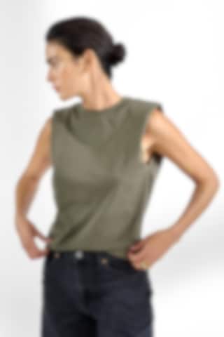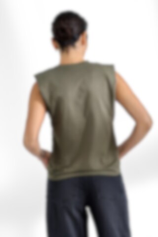 Fremstillet af eksklusiv 300 GSM økologisk bomuld, der giver en struktureret, tung fornemmelse og et smukt fald. Integrerede skulderpuder skaber en markant silhuet, mens den forstærkede halsudskæring med topstikning fuldender looket.
