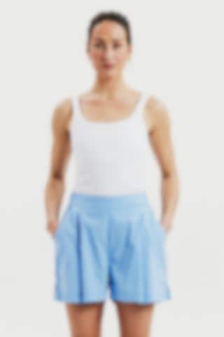 Den elastiske talje bagpå sikrer en fleksibel pasform hele dagen. Fremstillet i 100 % økologisk bomuldspoplin – et let og åndbart materiale med en glat overflade. Farven Air Blue giver shortsene et friskt sommerligt udtryk.