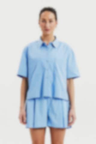 Poplinshorts i økologisk bomuld med afslappet pasform. Shortsene har en let udsvunget silhuet, som giver et luftigt og moderne udtryk. De forreste læg tilfører struktur, mens sidelommerne giver både funktion og komfort.