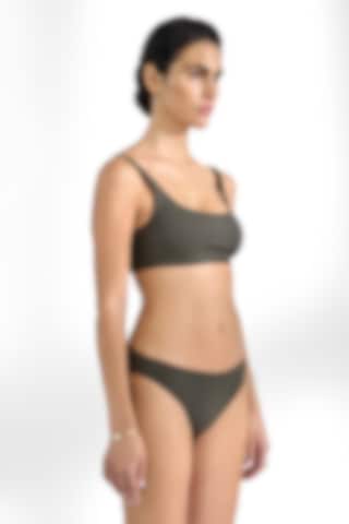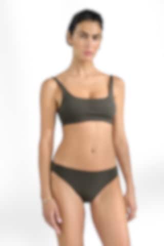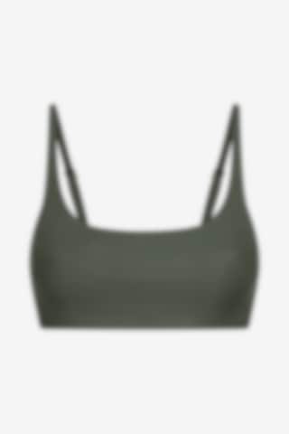 Bikini Soft top baseret på vores populære "Soft Bra". Modellen har en fleksibel pasform, justerbare skulderstropper og en tynd polstring, der kan tages af. Det ribstrikkede stof er lavet af genanvendt polyamid og har en fantastisk glans.