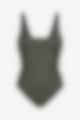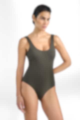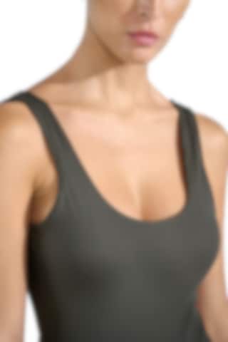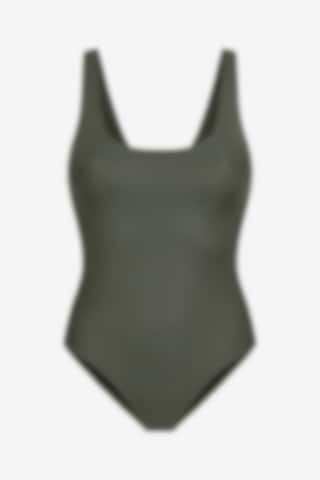 Elegant badedragt i klassisk model med dyb udskæring bagpå. Indbygget støtte til barmen giver ekstra komfort. Den ribstrikkede stof er flatterende og meget fleksibelt. Fungerer også perfekt som en top til shorts eller nederdel.