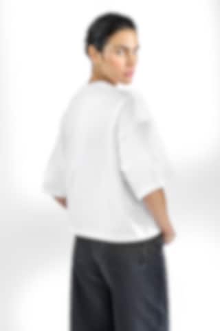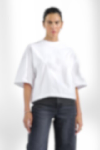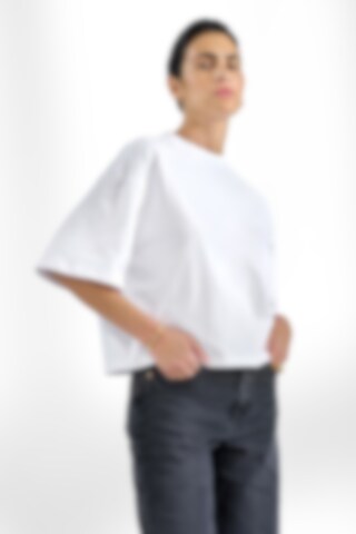 T-shirt lavet af kraftigt 300 gsm økologisk bomuldsmateriale. Den har en robust halsudskæring og stilfulde sideslidser. Med lidt længere ærmer og bredere skuldre får stykket et afslappet udtryk. Denne T-shirt fungerer bedst alene, men kan også bæres under en jakke eller blazer.