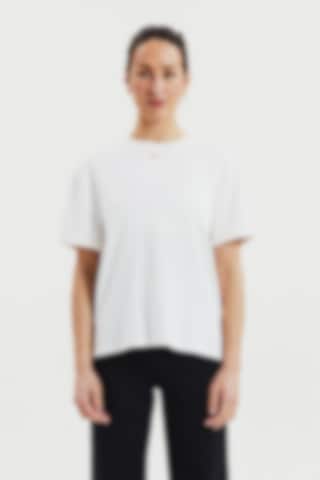 Oplev den luksuriøse fornemmelse af vores tunge viskose jersey stof med sin udsøgte drapering. Den kasseformede pasform og sideslidserne giver enestående komfort. Kombinationen af dette førsteklasses stof og den moderne skæring giver vores T-shirt et opdateret og elegant udseende, der virkelig er bemærkelsesværdigt.