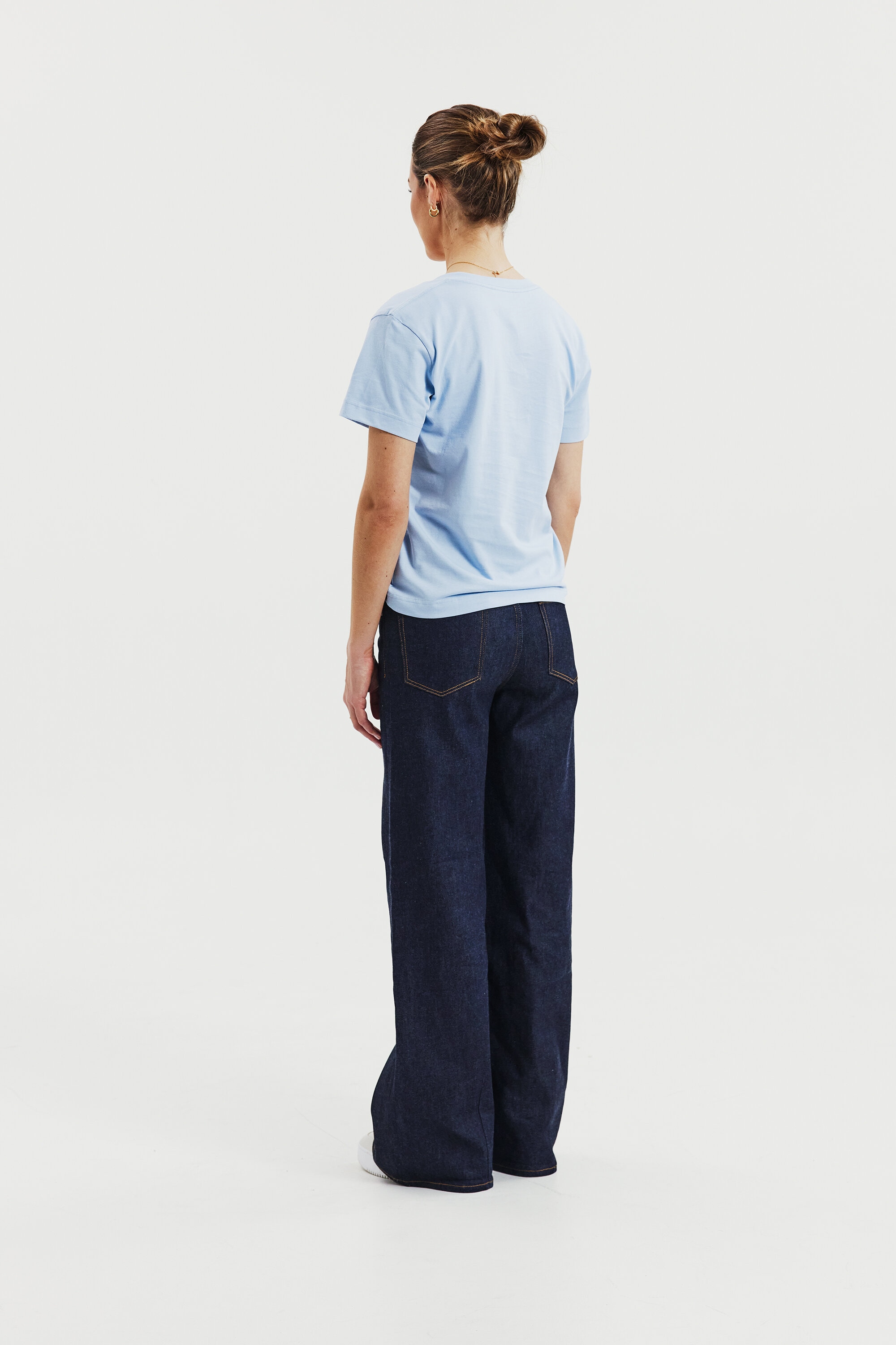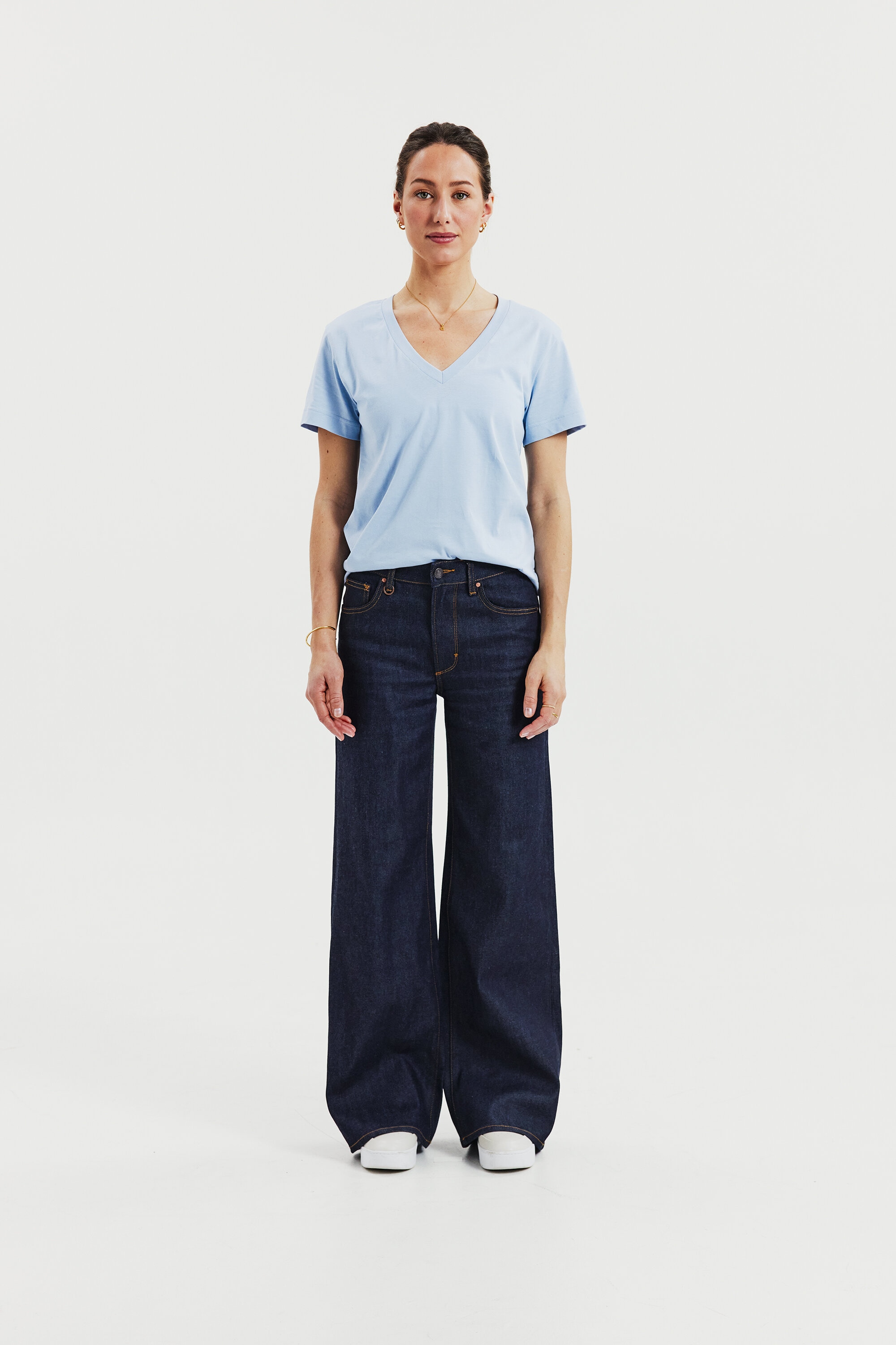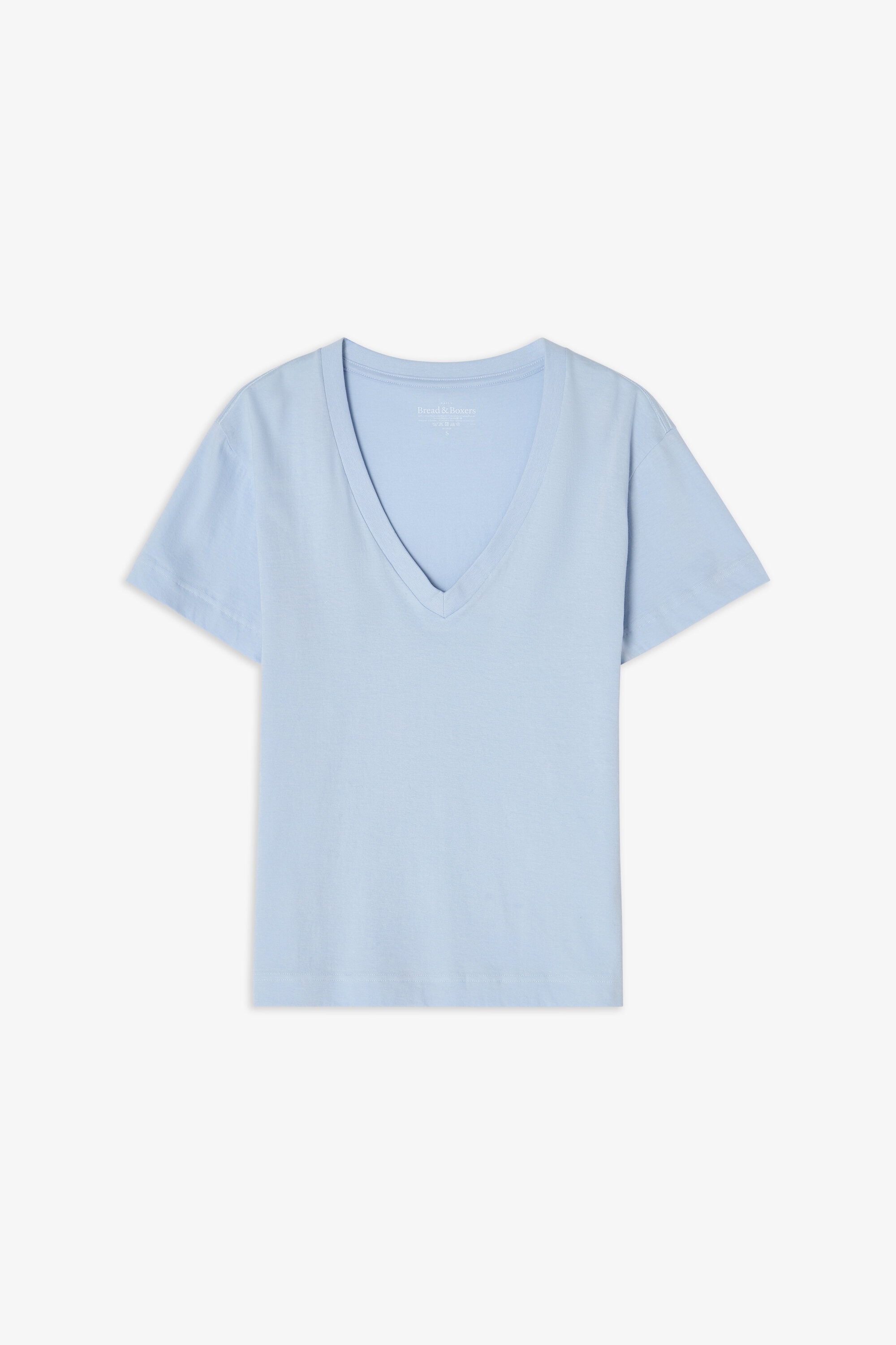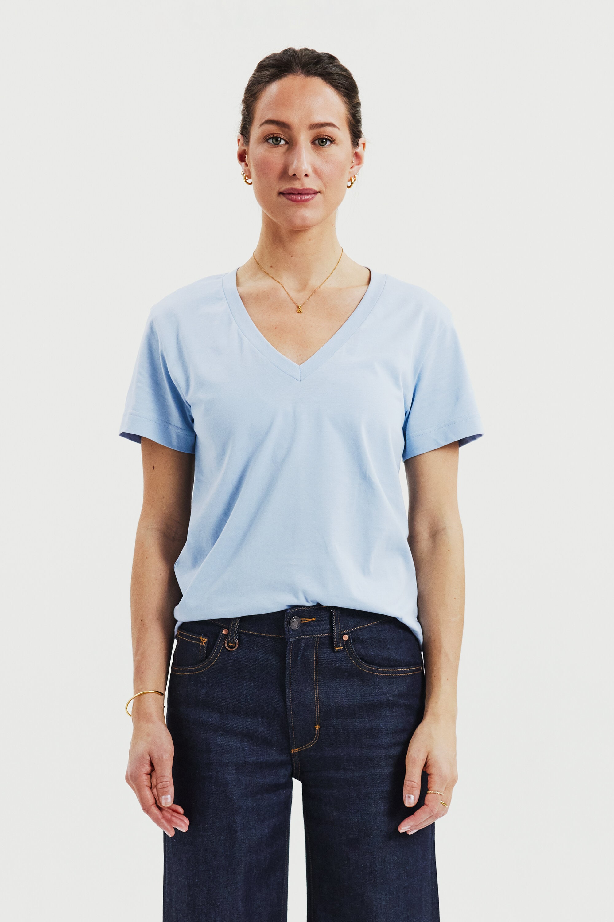 En moderne klassiker med en boxy pasform, fremstillet af tæt og blød økologisk bomuldsjersey. Designet i en regular fit med en rummelig V-hals og afsluttet med fine topstikninger – et uundværligt basisstykke i enhver garderobe.