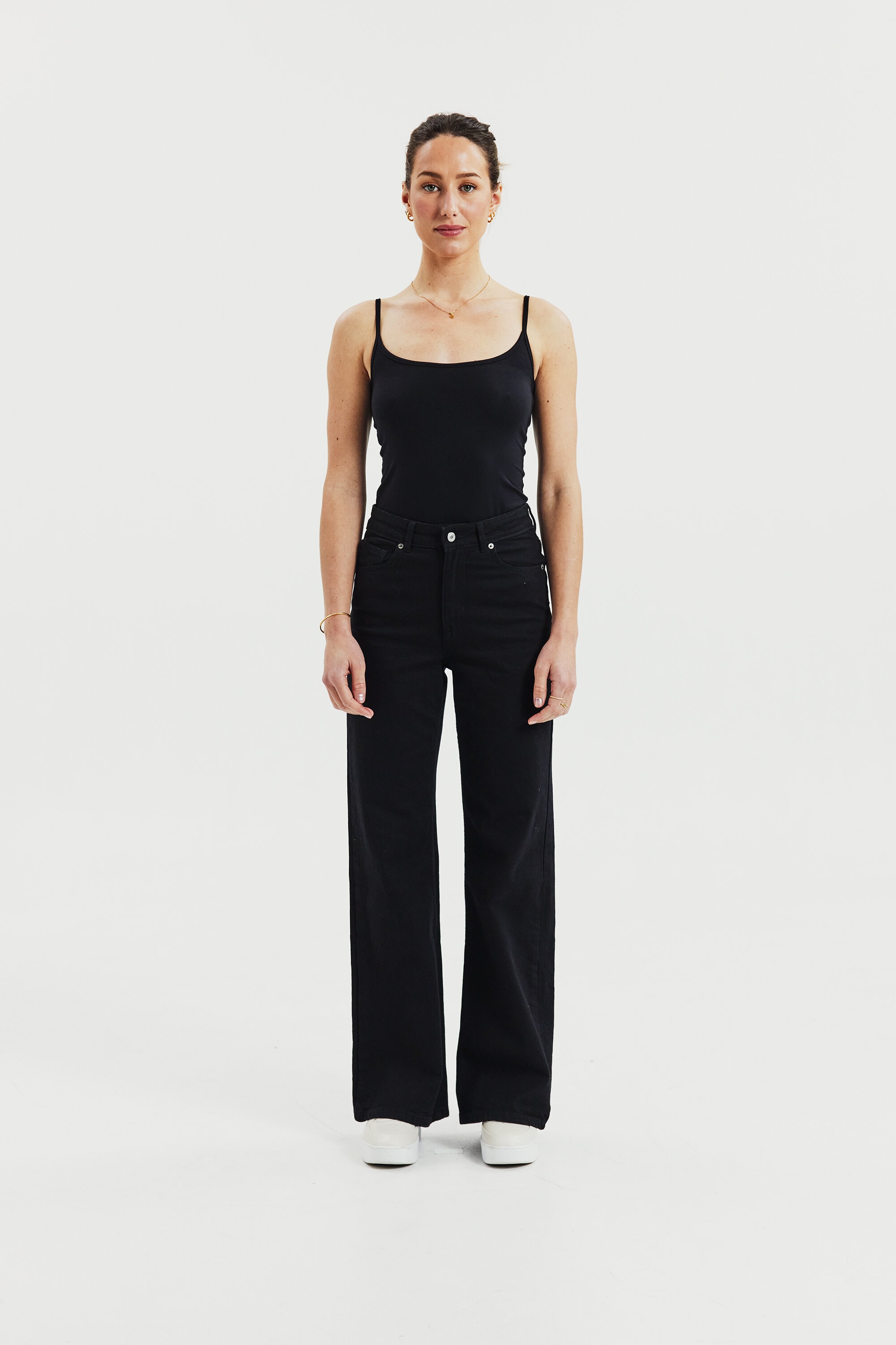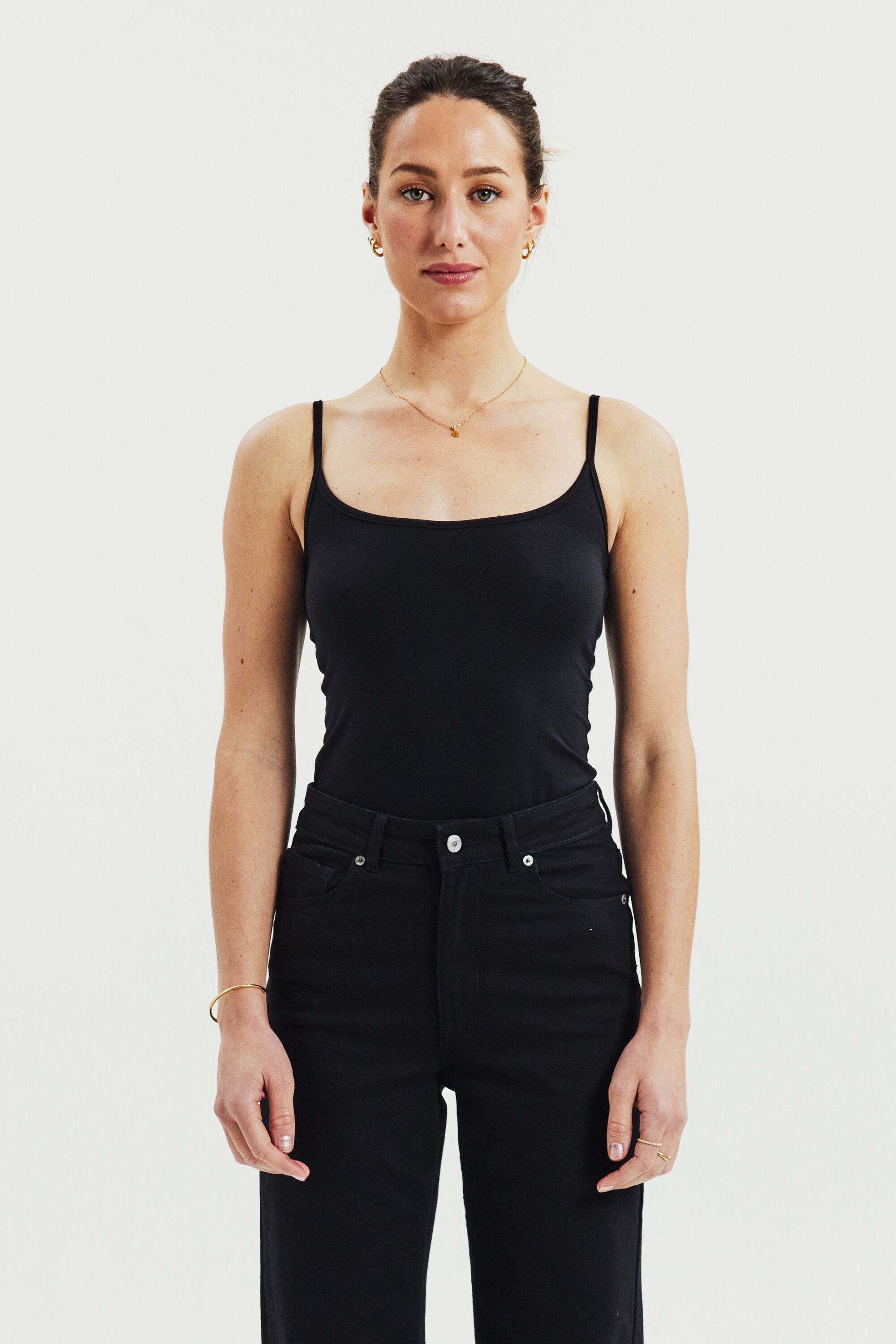 Tank top / singlet-top med smalle skulderstropper og rund halsudskæring. Fremstillet i blød lyocell med stretch, som giver en fleksibel og kropsnær pasform. Det lette og åndbare materiale gør toppen behagelig at have på hele dagen. En alsidig top til dame, perfekt som første lag under andre styles – eller alene på varme sommerdage.