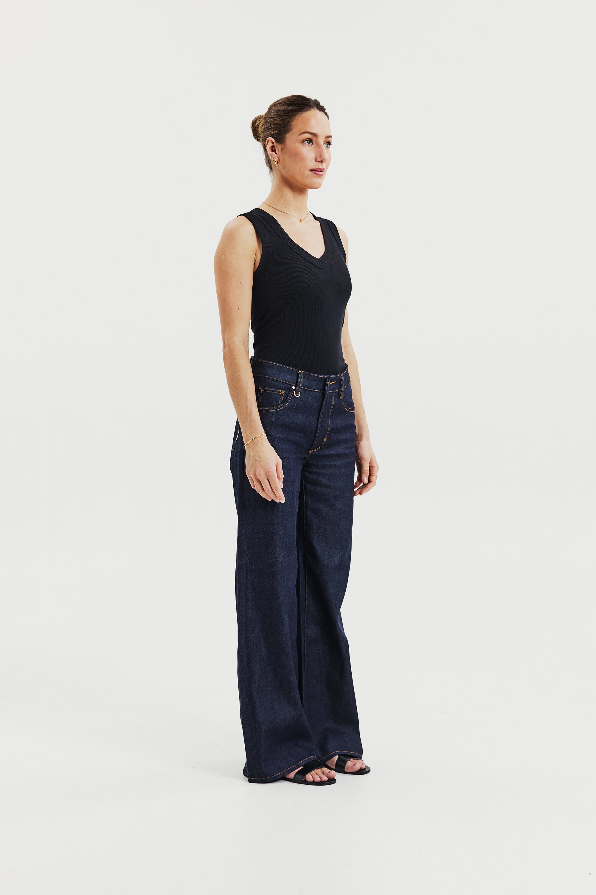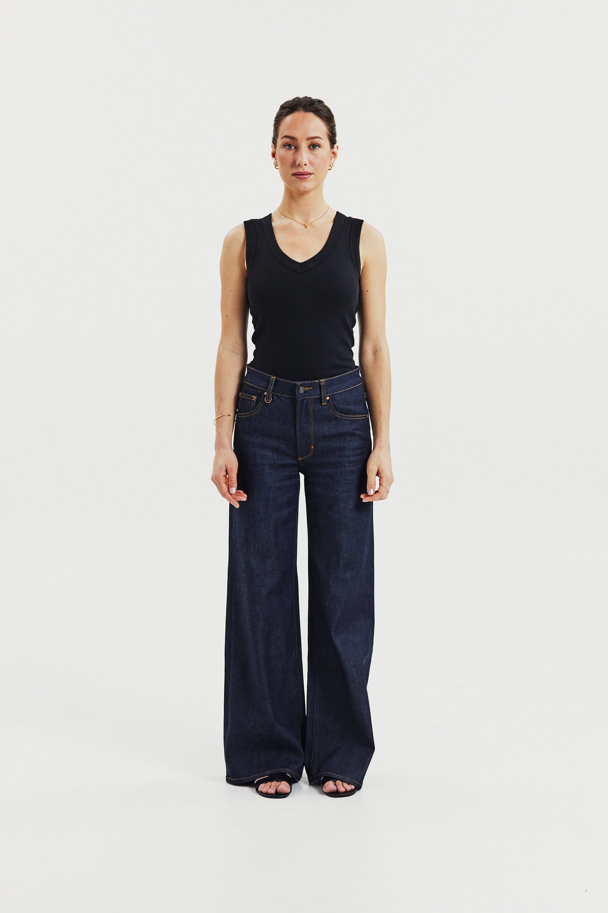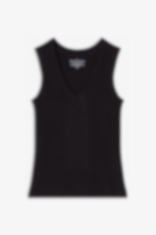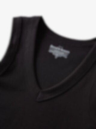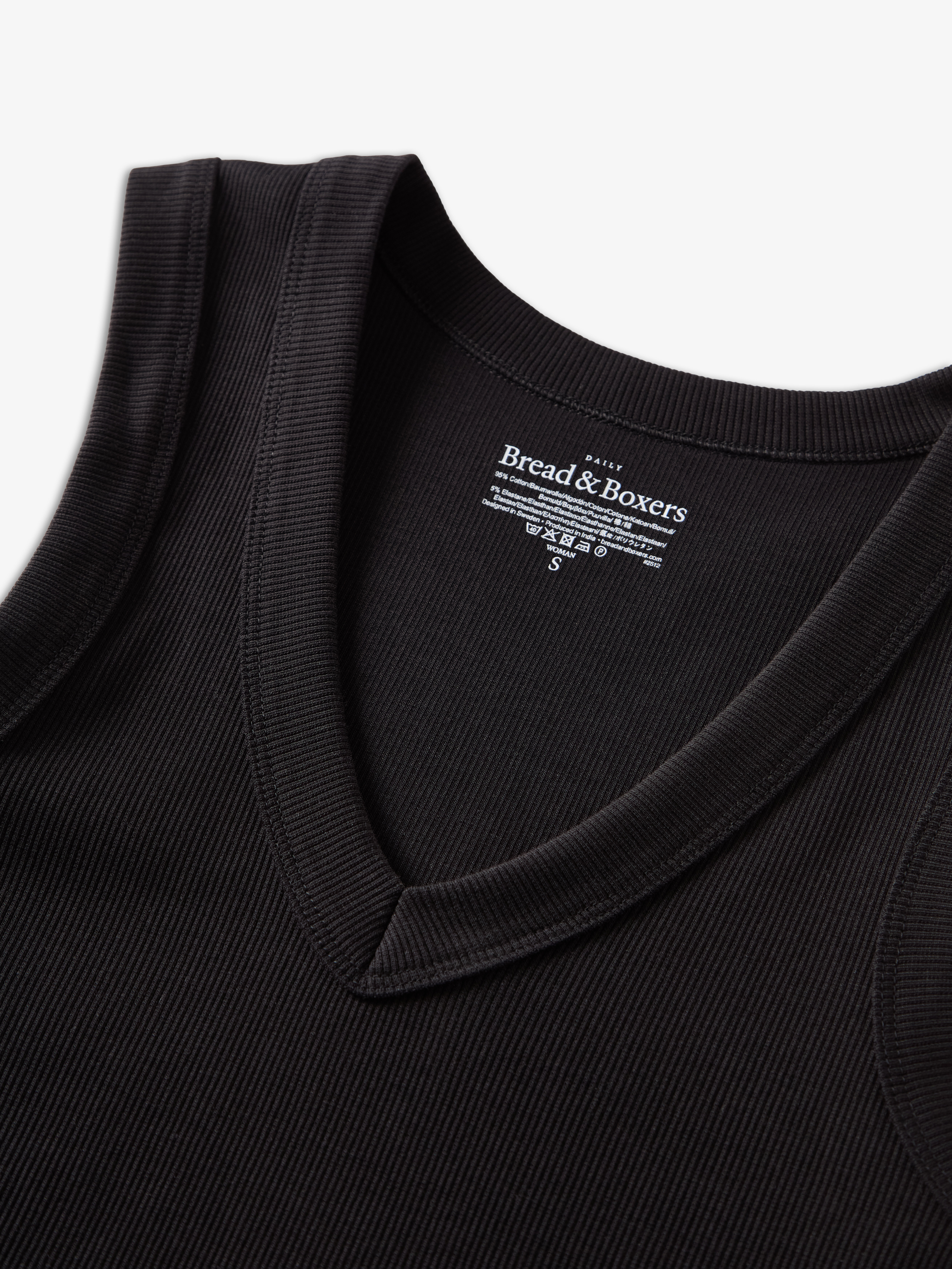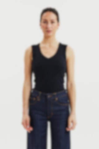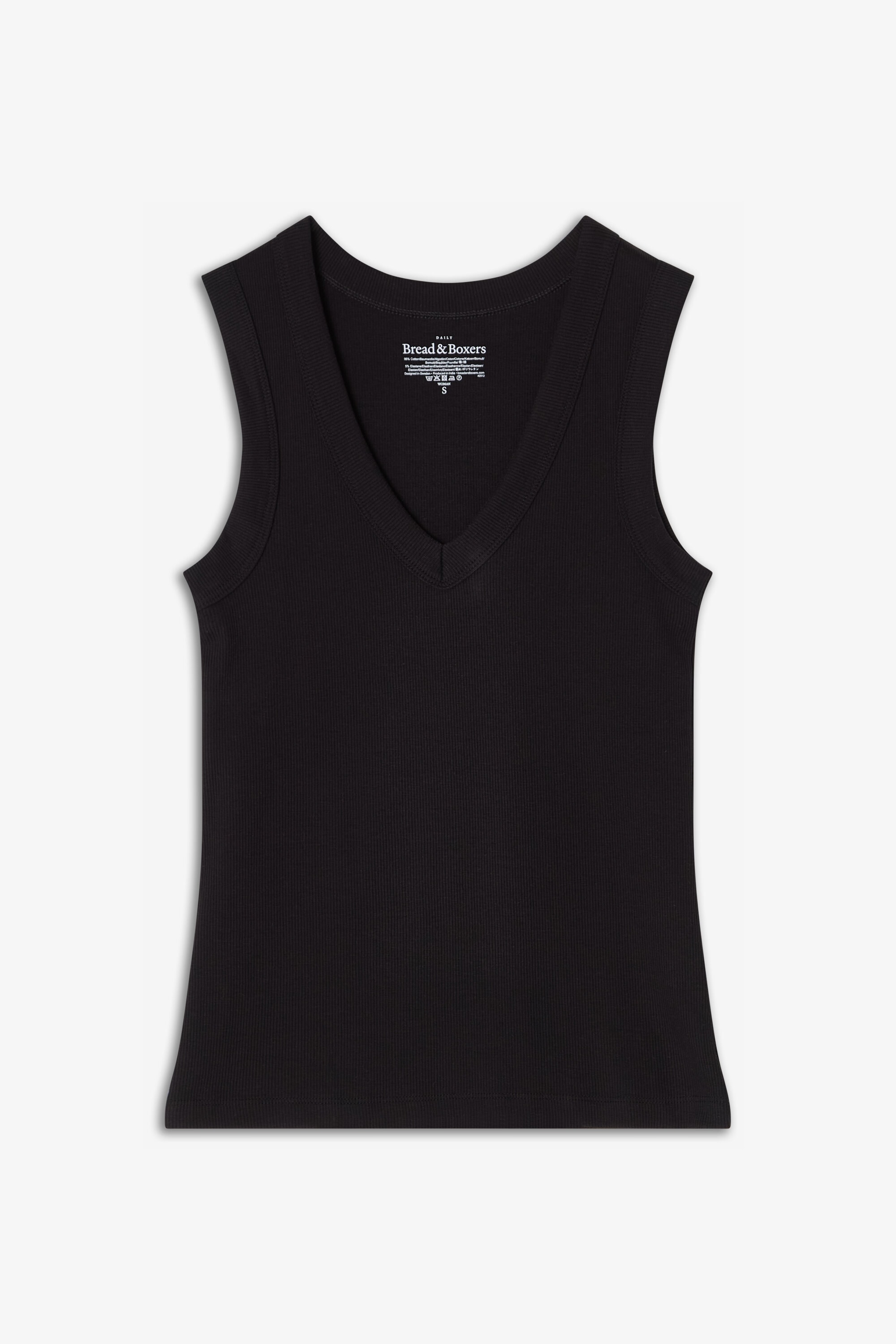 Ribbet tank top / top til dame med dyb V-udskæring. Fremstillet i en blød ribkvalitet af 95 % bomuld og 5 % elastan, der giver en behagelig og fleksibel pasform. Den dybe V-hals og de brede kantbånd skaber et rent og struktureret udtryk, mens den slanke silhuet gør toppen perfekt til lag-på-lag eller alene på varme dage. En enkel og tidløs tank top til dame, der hurtigt bliver en favorit i basisgarderoben.
